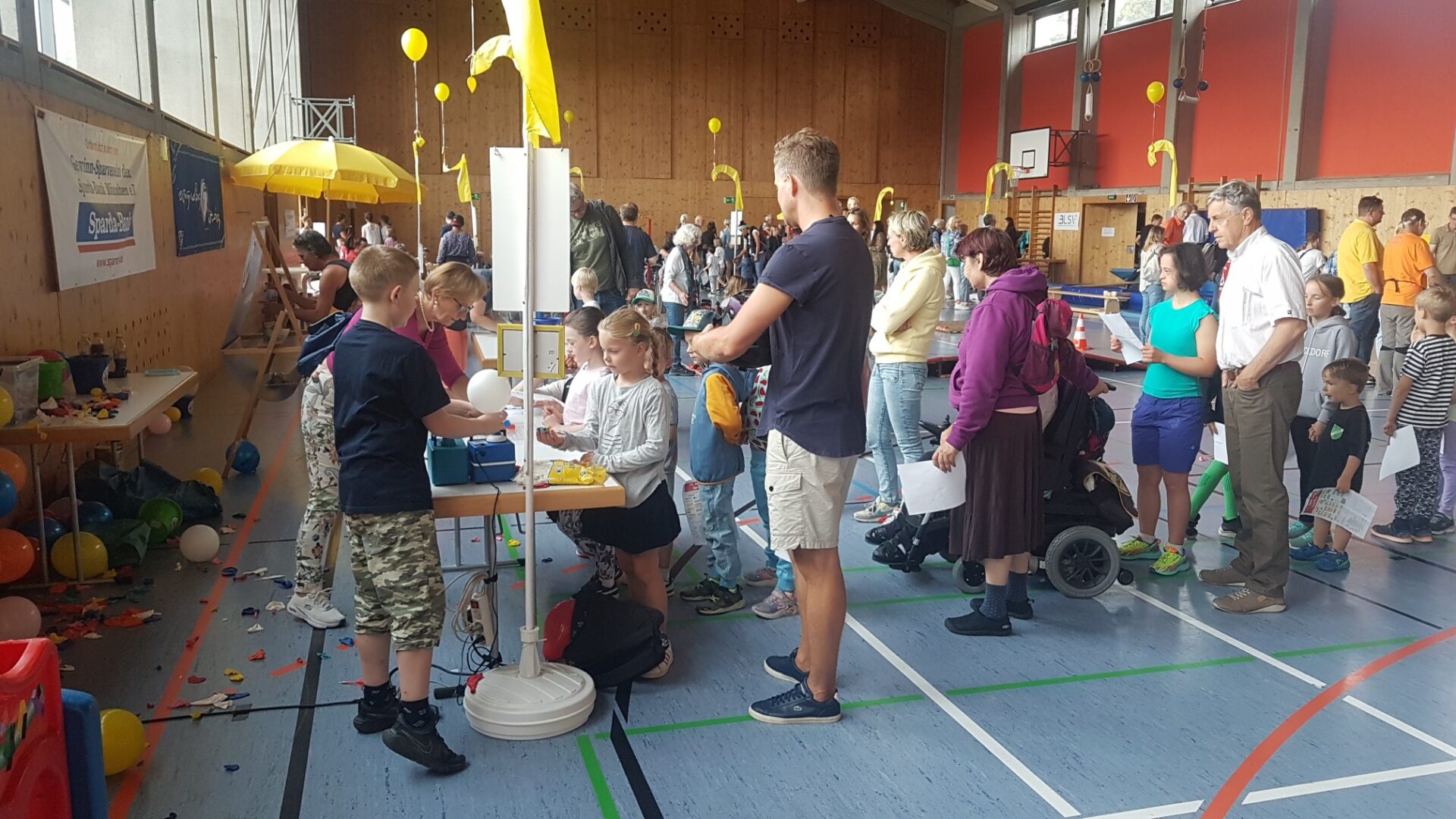 In der Sporthalle ging es umso lebhafter zu. Neben den „bewährten“ Stationen, wie Hindernis-Balancieren, Luftballonstechen, Torwandschießen, Dosen- und Ringe werfen, Korbball und einem Rolli-Parcour war erstmals auch die Tischtennisabteilung des SV Söcking mit der Aktion „Ping-Pong-Parkinson“ vertreten.