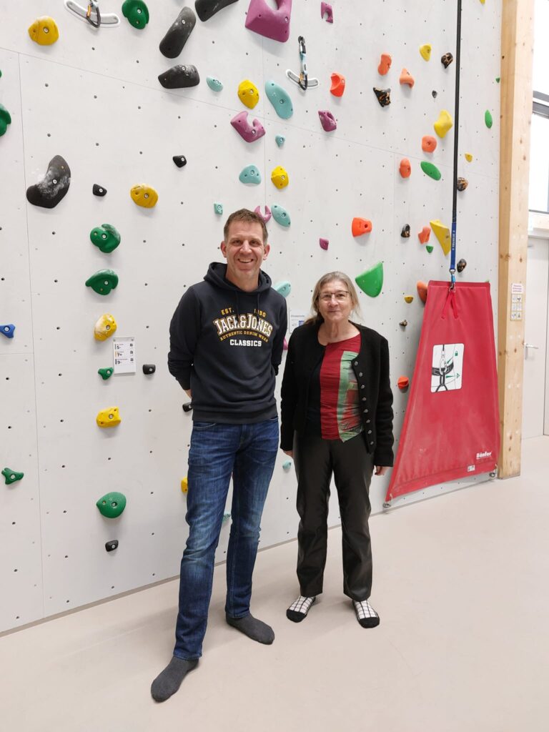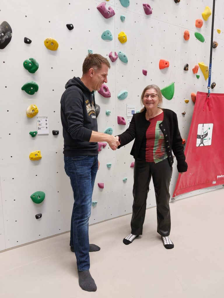 Auch wenn man – bedauerlicherweise – auf die Gelder des BLSV immer noch wartet, betonte sie die tolle sportliche Einrichtung, an der sich nach dem offiziellen Teil auch Bürgermeister Josef Dollinger, Grünen-Fraktionschef Dr. Michael Stanglmaier und die Sportreferentin Verena Beibl ran wagten. Und das mit sehr bemerkenswertem Erfolg. Alle drei schafften es, oben anzuschlagen.