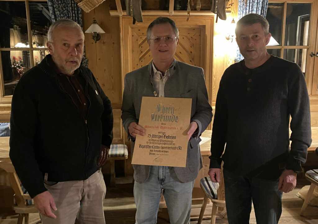 Vor 20 Jahren war der ehemalige BLSV-Kreisvorsitzende Hubert Müller bei der großen Einweihung des Sportplatzes dabei. Damals sagte er: Die Anlage werde positive Zukunftsperspektiven für das SCU-Vereinsleben bringen. Die Fußballer sind nun in ihrer zweiten Spielzeit in der Kreisliga Süd, überwintern derzeit auf Rang acht. Günter nutzte die stimmungsvolle Weihnachtsfeier und überbrachte dem Verein zum 75-jährigen Bestehen als Dank und Anerkennung für die hervorragende Mitarbeit im BLSV die Urkunde.