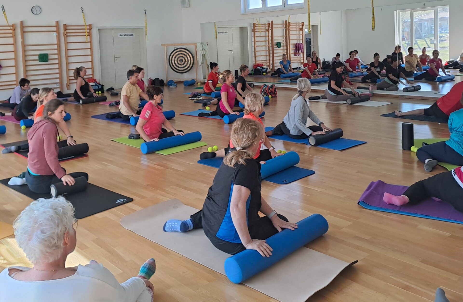 Am 28.02.26 fand wieder eine Fort­bil­dung für Übungs­lei­ter mit 8 UE zu Lizenz­ver­län­ge­rung in Post­bauer statt. Renate Lieb unter­rich­tete die 28 TN in WS-Gymnas­tik, Pila­tes und Yoga. Sie vermit­telte erstaun­li­che Wahr­neh­mun­gen auf Musku­la­tur, Faszien und Gehirn mit Tennis­bäl­len und Pila­tes­rol­len. Frank Bruck­ner schulte die Teil­neh­mer am Nach­mit­tag mit Line-Dance-Varia­tio­nen als Cardio- und Gehirn-Trai­ning mit Schritt­fol­gen, rhyth­misch Gleich­ge­wichts­sinn und Koor­di­na­tion. Beide Refe­ren­ten boten mit Lehr­gangs­lei­tung Reimann eine sehr abwechs­lungs­rei­che und infor­ma­tive BLSV-Veran­stal­tung. In 2027 ist wieder eine ähnli­che Fort­bil­dung geplant.