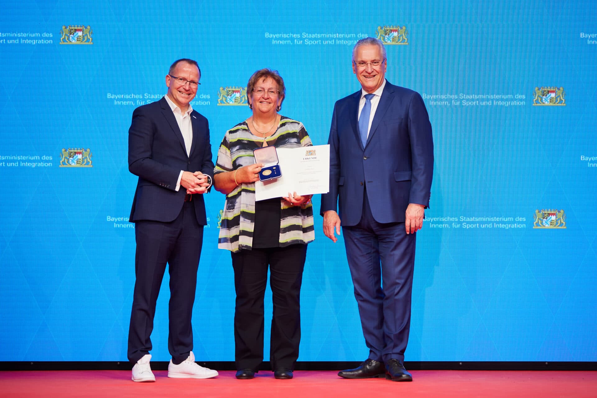 Am 21. Mai 2022 hat unsere Kreis­vor­sit­zende – Sport­kreis Weißenburg/​Gunzenhausen – Brigitte Brand die Ehren­me­daille für beson­dere Verdienste um den Sport in Bayern von Innen­mi­nis­ter Joachim Herr­mann erhal­ten. BLSV Präsi­dent Joerg Ammon und Bezirks­vor­sit­zen­der Dieter Bunsen beglei­te­ten die Ehrung.