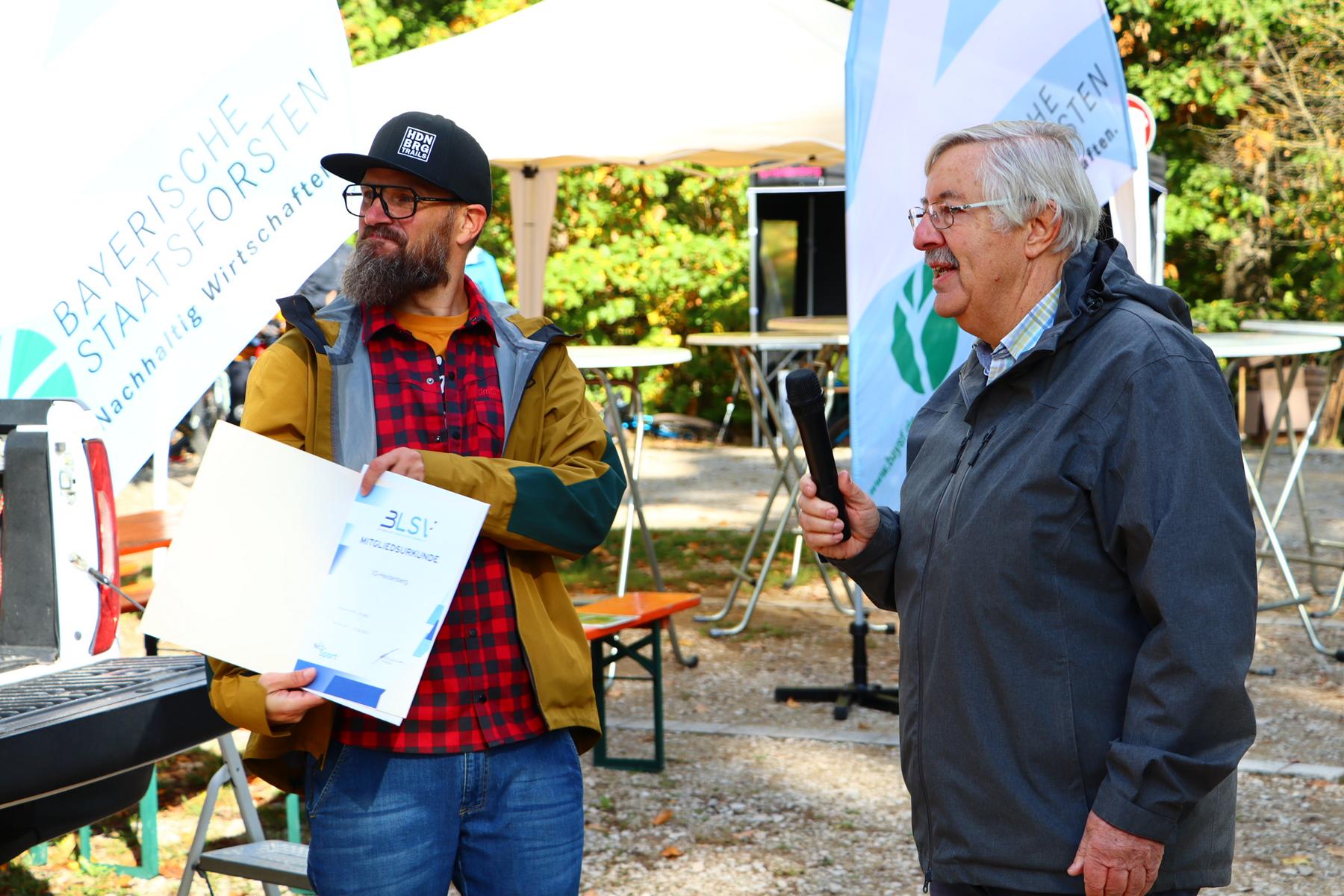 Im Zuge der Eröffnungsfeier der Heidenberg-Trails übergab Helmut Gruhn (rechts im Bild), der Vorsitzende des Stadtverbands Schwabach und 2. BLSV Sportkreisvorsitzender des Kreis Roth/Schwabach, die Ernennungsurkunde des BLSV an den 1. Vorsitzenden Michael Schöpf (links im Bild).