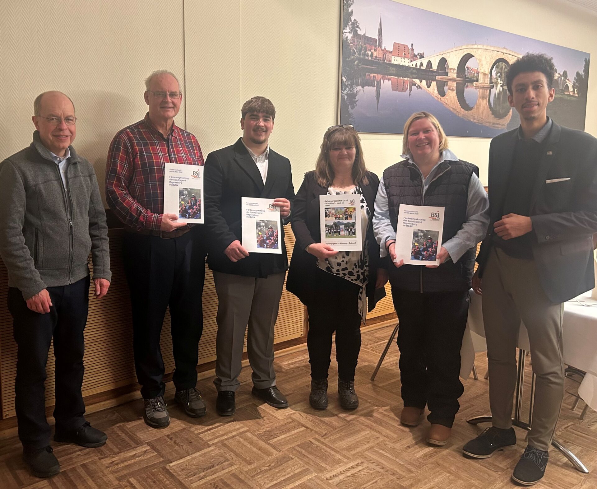 „Fit im Kopf – stark im Team“: Unter diesem Motto stellt die Sportjugend Regensburg (BSJ) ihre zwanzigseitige Jahresplanung vor. „Damit möchten wir den Bildungsaspekt des Sports mit dem Teamgedanken verknüpfen“, so die beiden Vorsitzenden Patricia Schneider und Detlef Staude. Das abwechslungsreiche Programm richtet sich an ehrenamtliche Mitarbeiter in der sportlichen Jugendarbeit, engagierte Jugendliche, Kinder und die interessierte Öffentlichkeit. Jugendsprecher Ludwig Songsage freut sich besonders über Fahrten für Jugendliche ab 14 nach Berlin, Brixen (Italien), Linz (Österreich) und Namestovo (Slowakei). „Internationale Jugendarbeit dient der Völkerverständigung, in der heutigen Zeit sehr wichtig“. Für Staude sind daneben die beiden Ausbildungen „Clubassistent“ sehr wichtig. „Hier können sich junge Menschen für Vereinsarbeit qualifizieren und motivieren!“ Weitere High-Lights sind das „Sommerfest der Demokratie“, ein „Spiel ohne Grenzen“ für Kinder, zwei Bidungswochenenden in Regensburg und Kallmünz und das World-Cafe am 5. Februar um 17:30 Uhr zusammen mit dem Jugendtreff Don Bosco. Hier können Jugendliche im Vorfeld der Kommunalwahl mit Stadträten auf Augenhöhe diskutieren. Infos