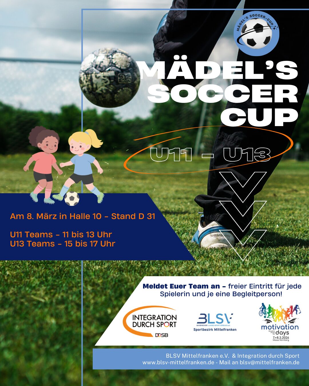 Am 8. März 2026, dem internationalen Weltfrauentag, feiern wir in Nürnberg nicht nur die Stärke und den Mut von Mädchen, sondern auch die Vielfalt, die unsere Gesellschaft ausmacht. Beim ersten BLSV & IDS (Integration durch Sport) Mädels Soccer Cup auf den Motivation Days gehört das Spielfeld den jungen Spielerinnen – unabhängig von Herkunft, Sprache oder Hintergrund. Hier zählt, was uns verbindet: Teamgeist, Fairness und die Freude am Fußball.