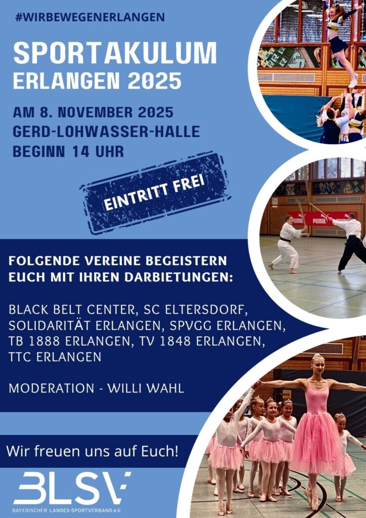 🎉 Auf zum Sportakulum Erlangen 2025! 🏆 Am 8. November 2025 ab 14 Uhr verwandelt sich die Gerd-Lohwasser-Halle in Erlangen in eine Bühne für die lokalen Sportvereine. Willi Wahl führt durch ein abwechslungsreiches Programm mit sportlicher Höchstleistungen! 💪 📣 Was erwartet dich? Ob Sportfan, Quizliebhaber oder einfach neugierig – beim Sportakulum ist für alle etwas dabei. Komm […]