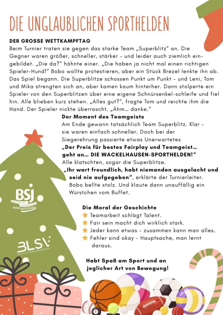 Heute ist bundesweiter Vorlesetag! Wir haben für euch und eure Kinder, ob zu Hause oder in den Sportstunden im Verein oder in der Schule, eine kleine Sportgeschichte. Nehmt euch doch vor der nächste Übungseinheit ein bisschen Zeit und lest die Geschichte vor. Die unglaublichen Sporthelden von Wackelhausen Die Moral von der Geschichte ⭐ Teamarbeit schlägt […]