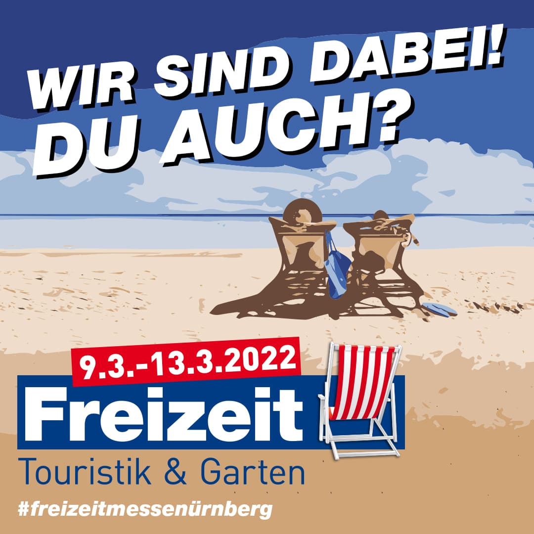 Am Samstag, den 12. März und Sonntag, den 13. März 2022 sind wir auf der Freizeit Messe 2022 in Nürnberg vertreten