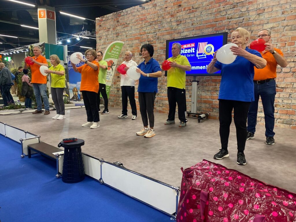Auf der Aktivmesse war der BLSV mit seinen Übungsleitern vertreten und hat verschiedenste Mitmachangebote für die Best-Ager ab 60 angeboten.