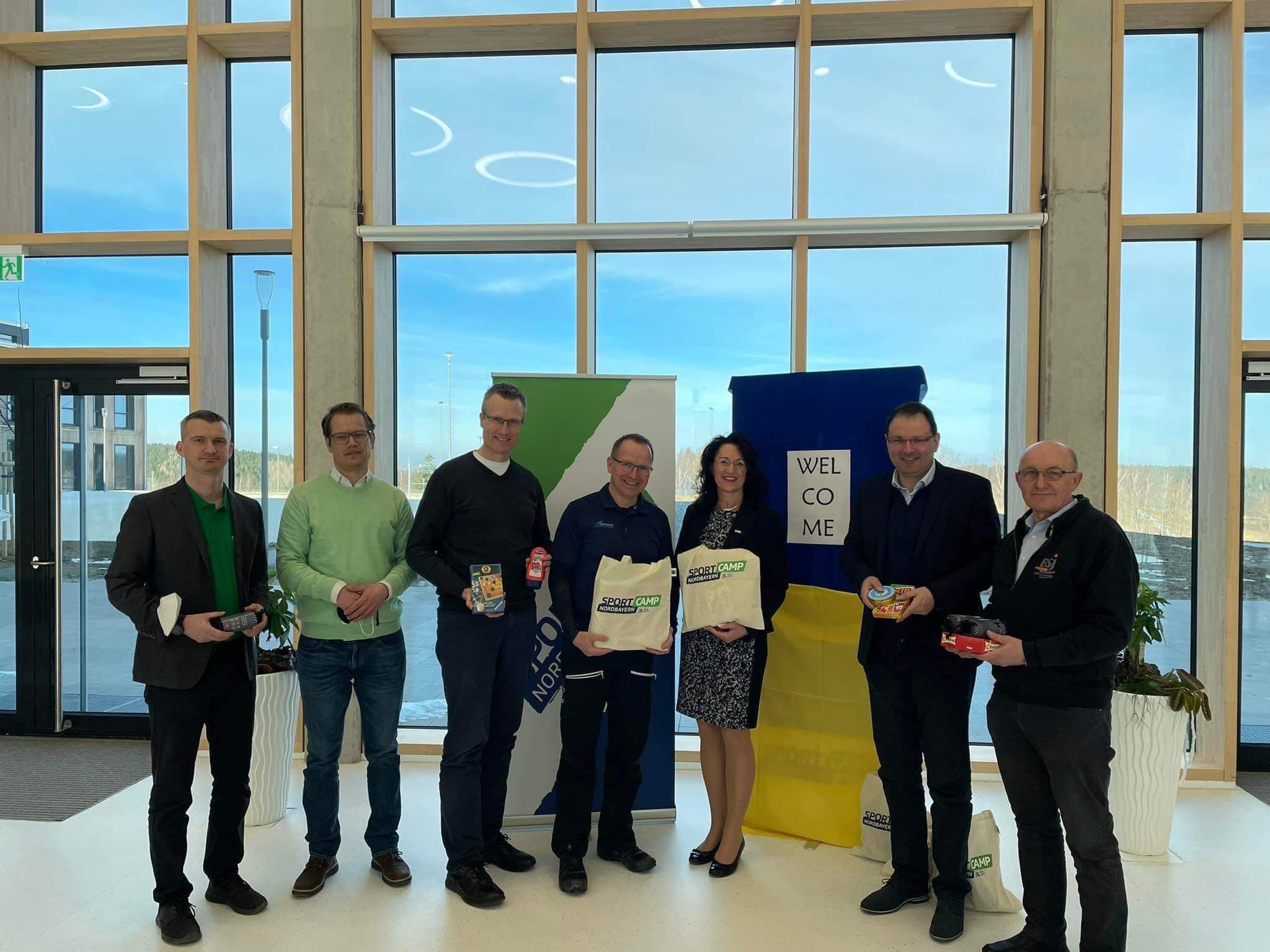 Das Sportcamp Nordbayern ist bereit für die Geflüchteten aus der Ukraine (v.l.n.r. Kai Melerski - Geschäftsführer Sportcamp Nordbayern, Christopher Huth – BLSV-Kreisvorsitzender, Michael Schreier – Bürgermeister von Bischofsgrün, Jörg Ammon – Präsident des BLSV, Monika Engelhardt – BLSV-Bezirksvorsitzende Oberfranken, Martin Schöffel - MdL, Roland Graf - Beisitzer Bezirksjugendleitung BSJ Oberfranken)