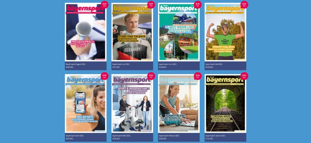 Das Magazin bayernsport des Bayerischen Landes-Sportverbands ist für alle seine Mitglieder – das sind rund vier Millionen Sportlerinnen und Sportler in ganz Bayern – kostenlos zugänglich. Der bayernsport erscheint immer zum Ende eines Monats. Alle zwölf Ausgaben gibt es als E‑Paper in der kostenlosen Mobile-App „BLSV Kiosk“ und online auf der Seite des BLSV bayernsports. Vier Ausgaben (März, Juni, September, Dezember) erscheinen zudem traditionell als Printausgabe. Um das Magazin auch wirklich allen Sportlern zugänglich zu machen, ist die BLSV-Nummer des jeweiligen Vereins so wichtig!